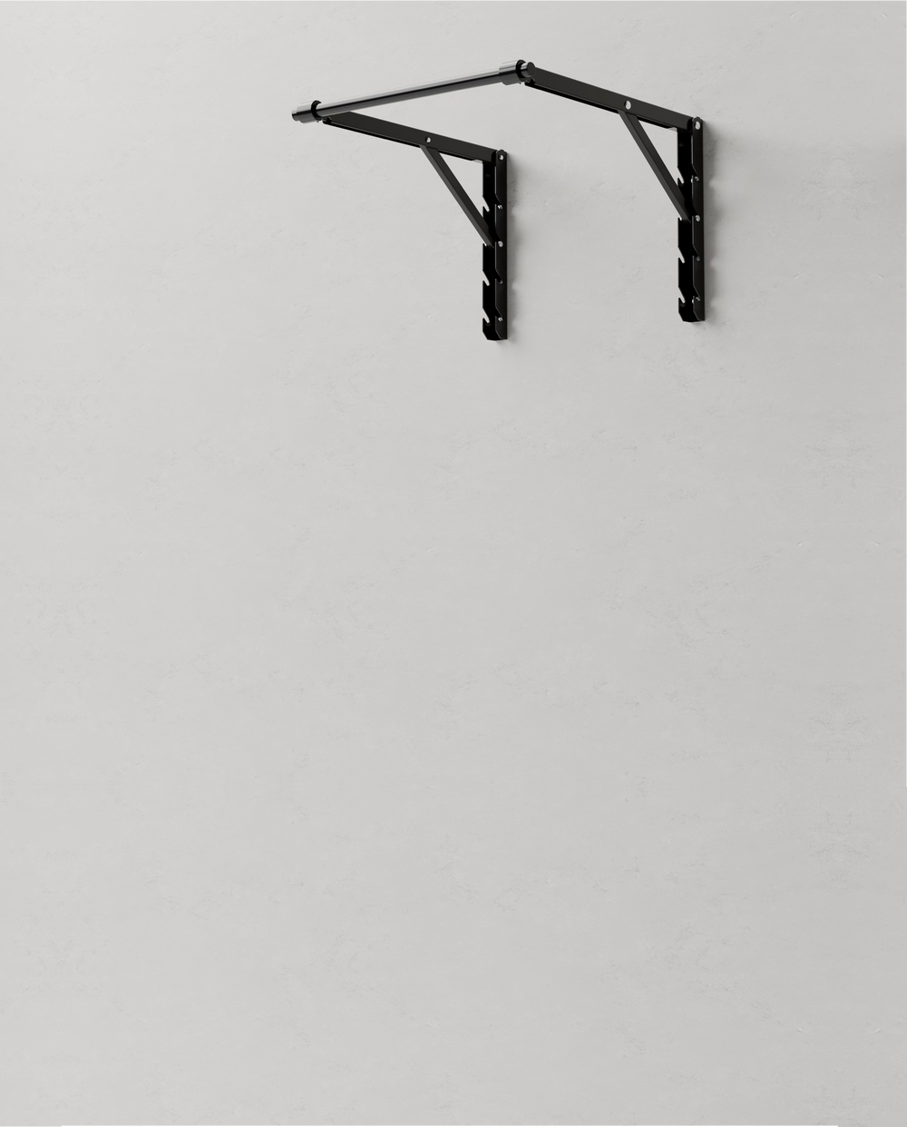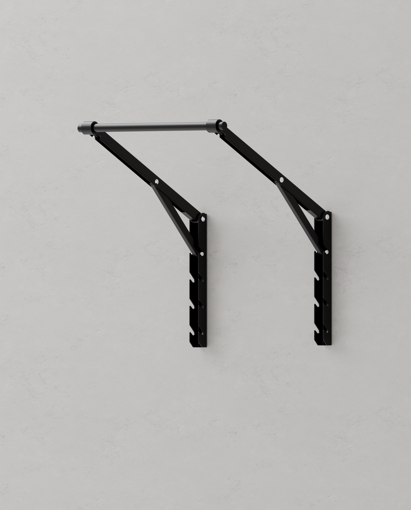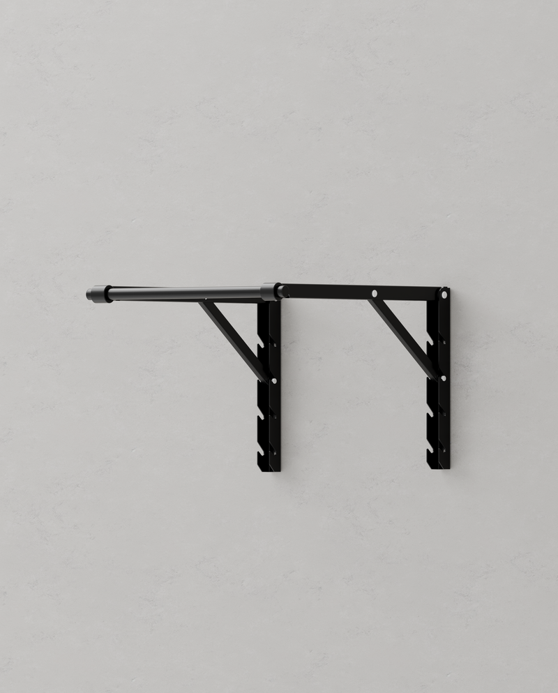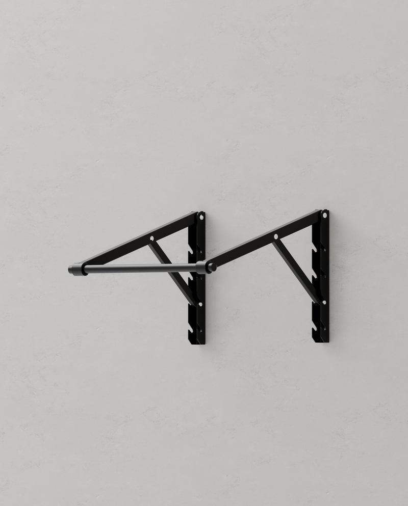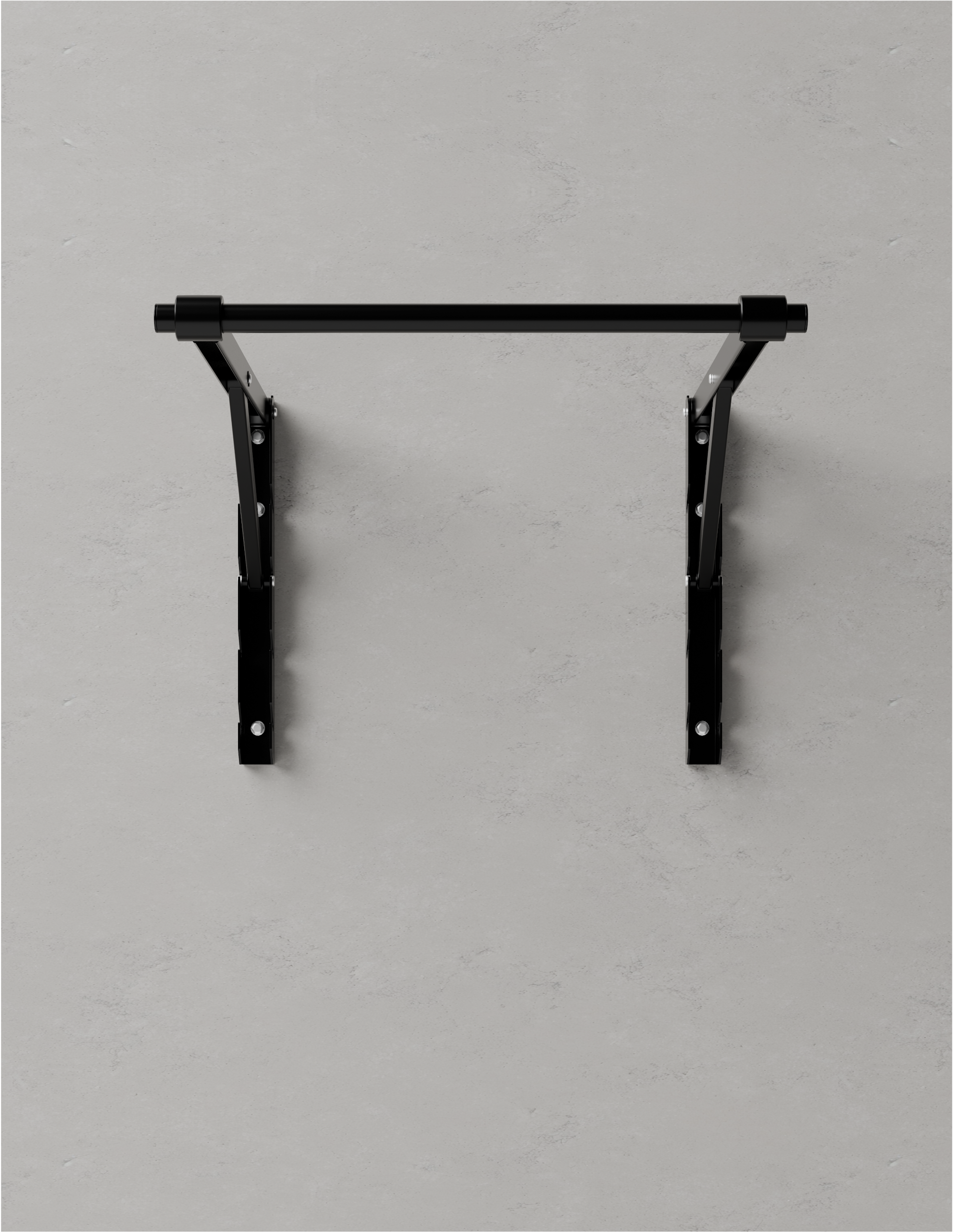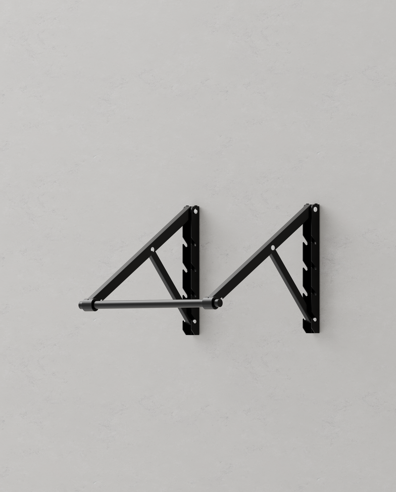 But behind the frame sits a pull-up bar, folded flat against the wall and completely out of sight.