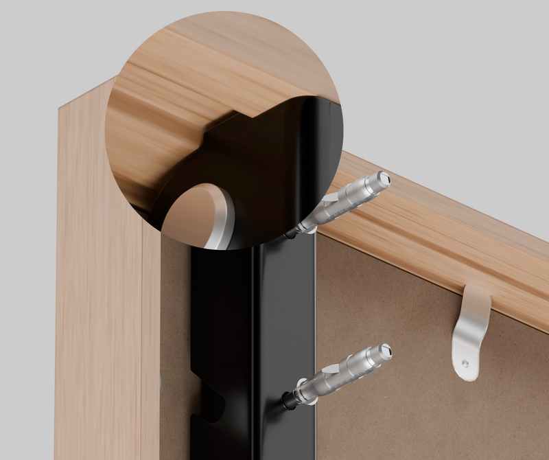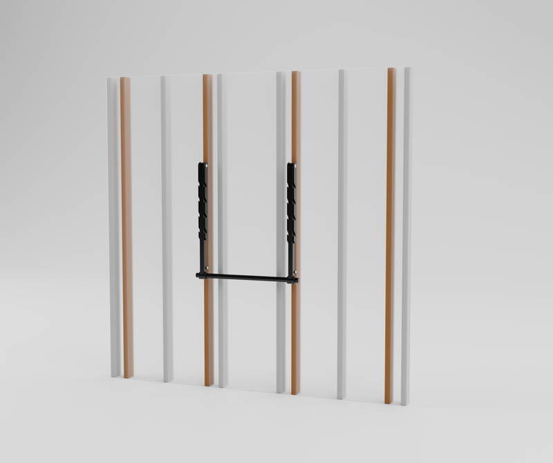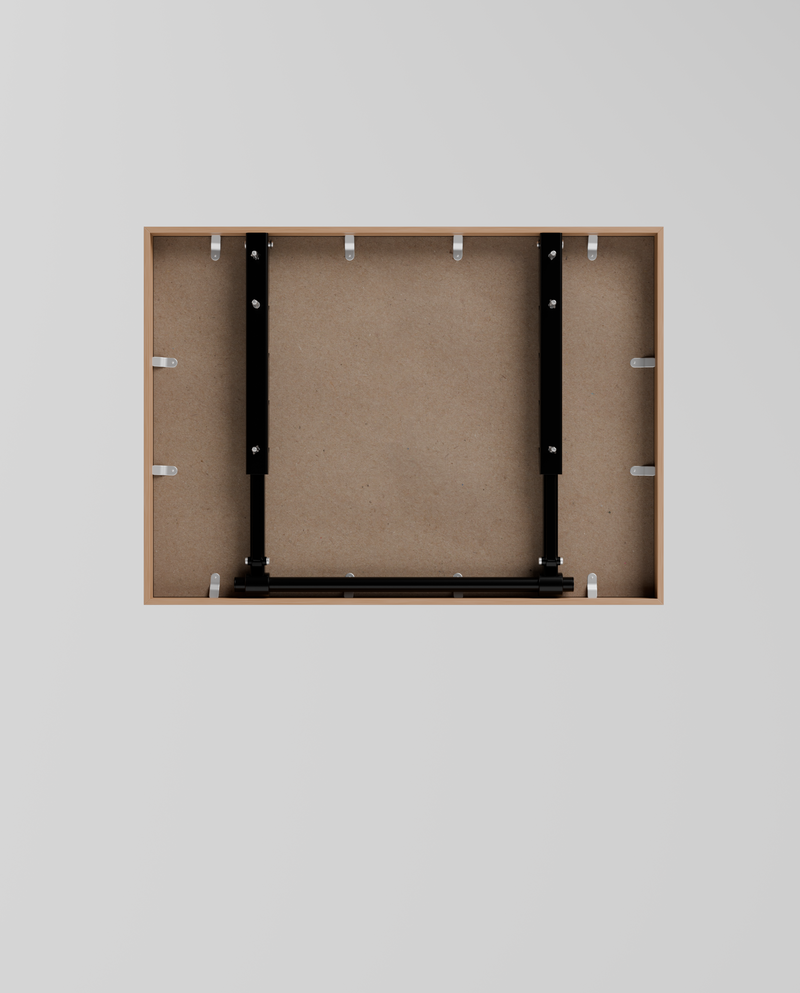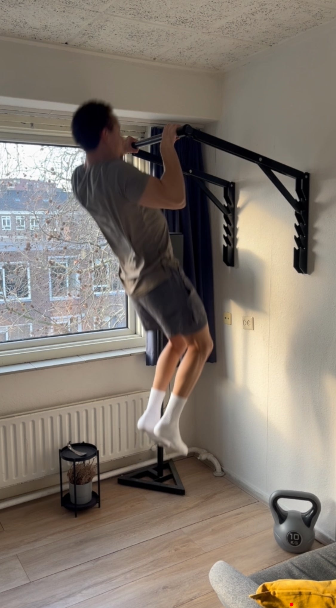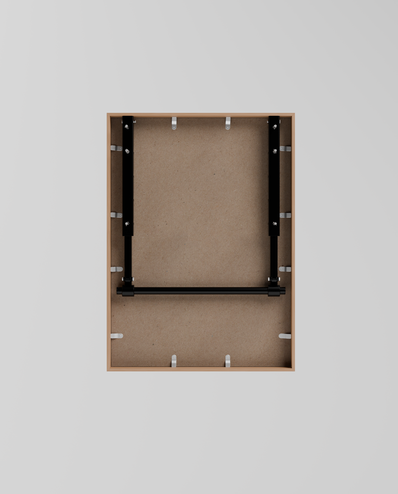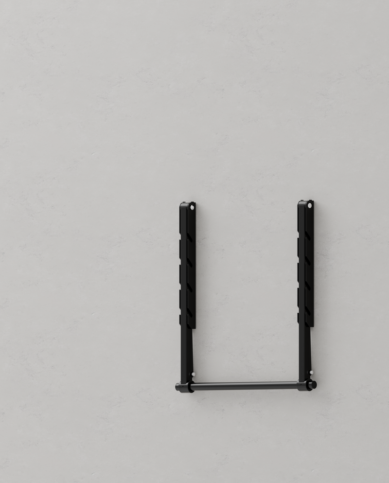But behind the frame sits a pull-up bar, folded flat against the wall and completely out of sight.